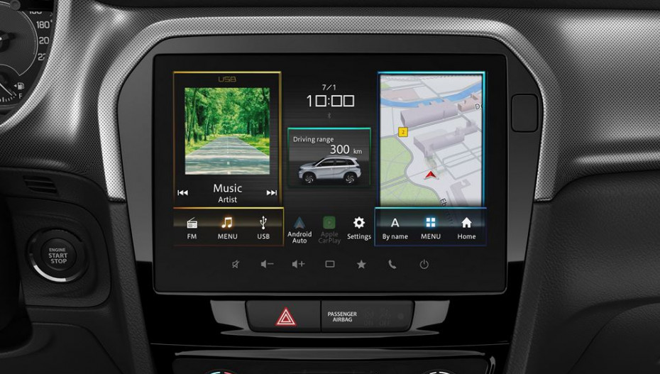Les principaux équipements de série du Vitara Hybrid Avantage sont: un système multimédia avec écran tactile 9 pouces, une connexion sans fil compatible Android Auto et Apple CarPlay, les services connectés Suzuki Connect, une caméra de recul, la reconnaissance vocale, un système de navigation, l'air conditionné à régulation automatique, un dispositif d'ouverture et de démarrage sans clé, des lève-vitres électriques avant, des phares et essuie-glaces automatiques, la gestion automatique des feux de croisement/de route, des rétroviseurs extérieurs réglables électriquement et dégivrants, des jantes en alliage léger 17 pouces etc.